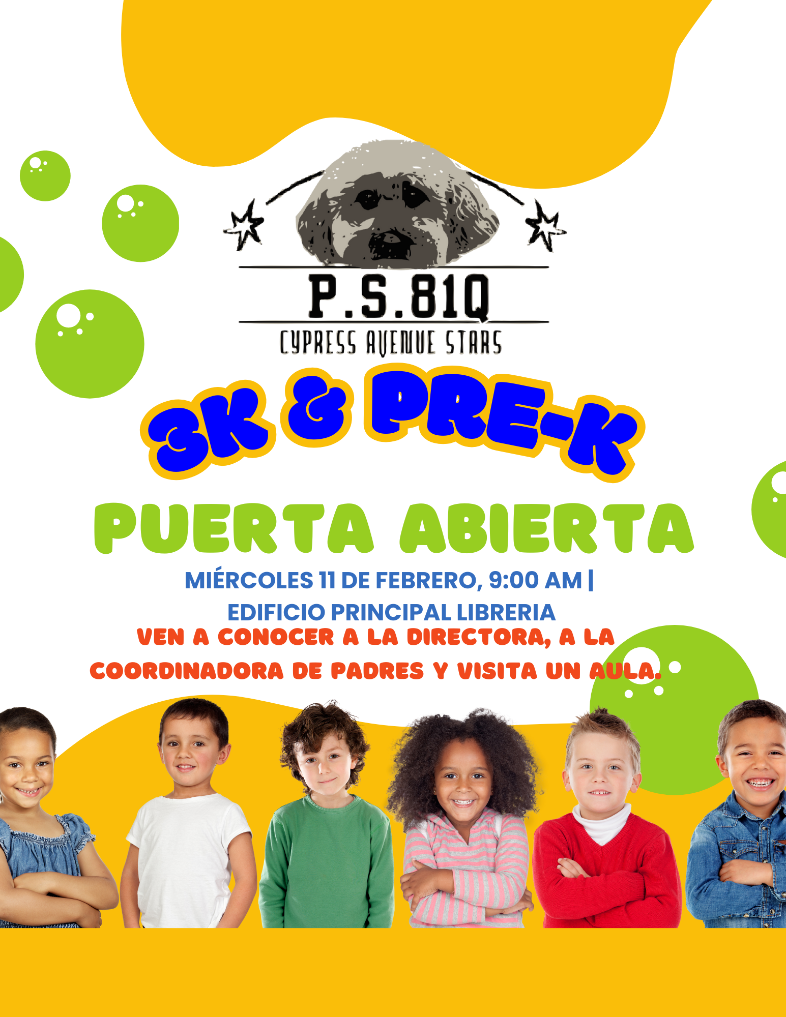 PS 81 Q is excited to host an upcoming 3K and Pre-K Open House for prospective families. Parents will have the opportunity to meet our principal and parent coordinator, learn more about our school community, and visit live classrooms in action. This event will offer families a firsthand look at the warm, nurturing, and engaging learning environment that makes PS 81 Q such a special place for our youngest learners.
